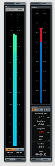 Pentru alinierea ușoară a loudness-ului și menținerea dinamicii fără a crește nivelul maxim al volumului și rata de compresie, Cubase 7 vine cu un contor al loudness-ului integrat, care este pe deplin compatibil cu standardele EBU privind loudness-ul. Măsurarea precisă a loudness-ului îți permite să urmărești intensitatea track-urilor tale și vei putea livra materiale în formate conforme cu normele EBU.